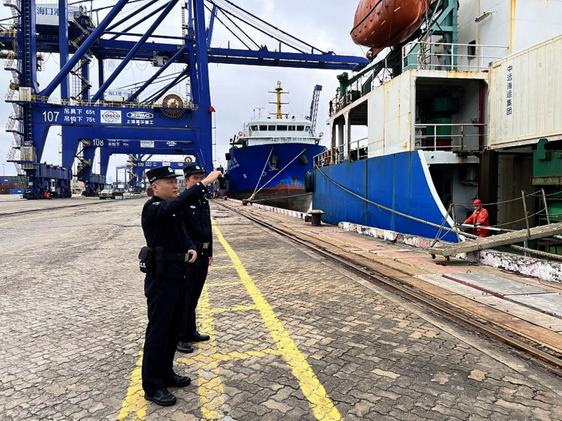 12月18日,秀英边检站民警开展巡查。