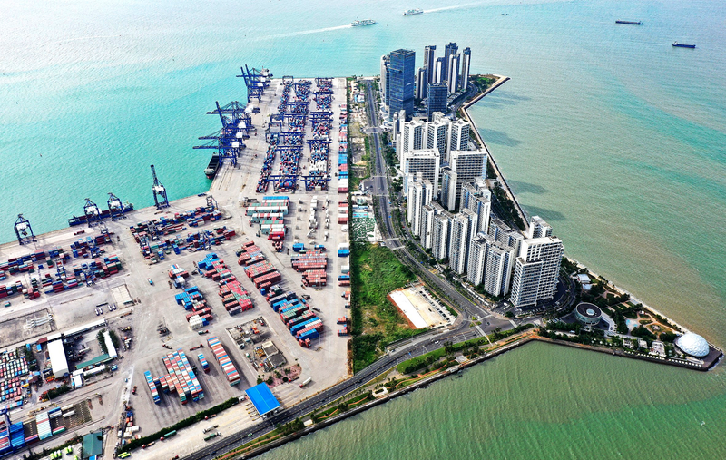 海南自贸港10个“二线口岸”之一的海口港(2025年11月27日摄,无人机照片)。新华社记者 郭程 摄