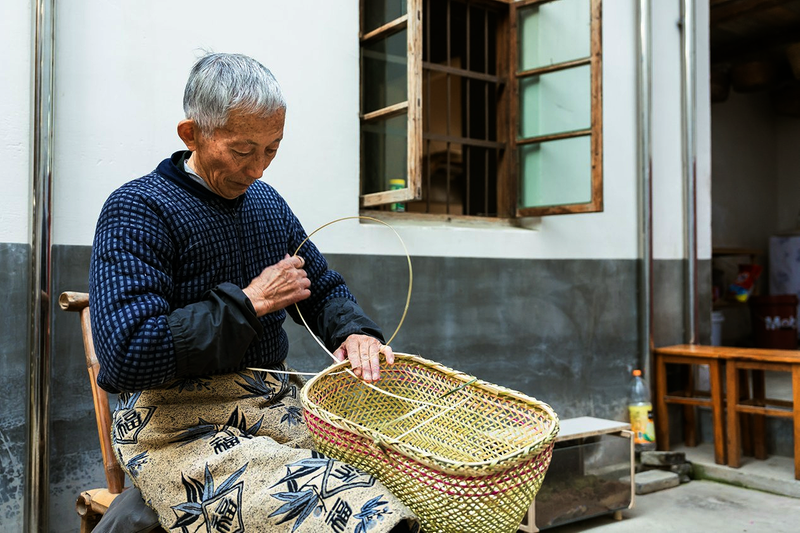“ 编竹篮是个耐心活,从选竹、砍竹、劈篾到编织,一道道工序都急不来。”五溪村村民钱福华一边编织竹篮一边回忆说,“在我年轻的时候,我们村竹编制品很多,从质朴结实、承载丰收的竹笼,到精巧细致、散发面食香气的馍篮子,每户村民家中都能看到,而且特别结实耐用。”