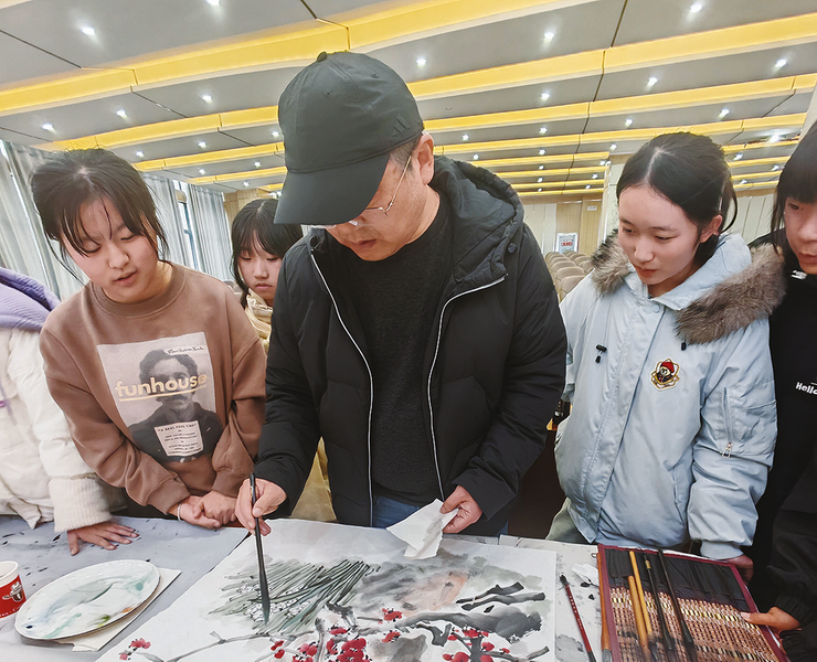 近日,池州市第十六中学初一年级150余名学生迎来一场书画艺术之约。中国美术家协会会员,中国工笔画学会会员、九华山美术家协会主席王瑜带来中国工笔画主题讲座,随后多位书画家现场挥毫泼墨,为学生进行沉浸式教学,生动讲解国画与书法的文化底蕴与创作技法。