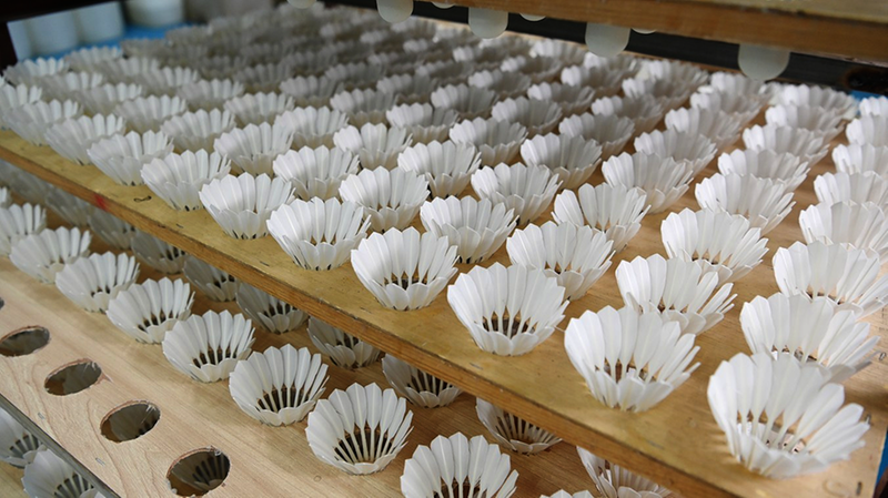安徽省翱翔体育用品有限公司生产线上的羽毛球。 通讯员 王慧 摄