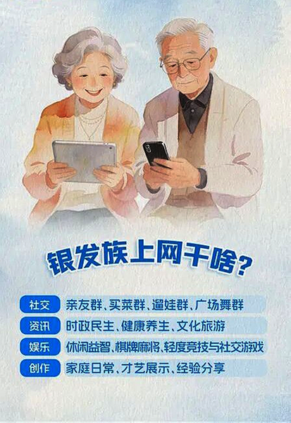 “随着家庭结构小型化和退休后社交圈的收缩,互联网成为老年人对抗孤独、维持社会连接的重要通道。”中央民族大学社会学系副教授范叶超说,除了便利生活,上网更是为了重新确认自我价值。