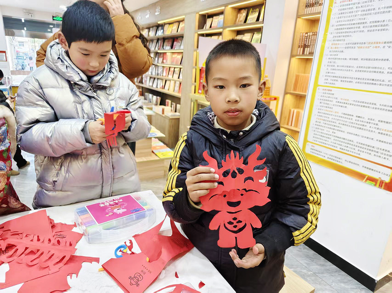 为营造“爱读书、读好书”的全民阅读氛围,连日来,县委宣传部联合有关部门开展图书共读、福袋制作、阅读打卡等系列活动,吸引500余人次参与。图为1月3日,县委宣传部联合县新华书店开展“冬藏经典”主题之手工剪纸活动,参与活动的小读者在展示作品。 通讯员 盛超 摄