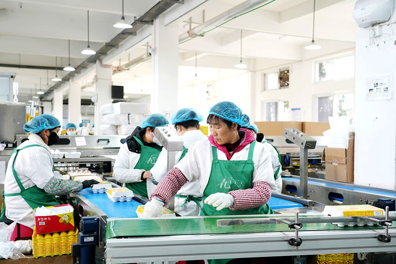 1月6日,位于石台县丁香镇农民工创业园的池州胜牧农业发展有限公司生产车间内,工人正在分拣、包装新鲜鸡蛋。该公司主要从事有机富硒土鸡、土鸡蛋生产和销售,重点供应国内大型高端商超,累计服务门店超200家,2025年销售额达5900万元。 记者 潘欢欢 摄