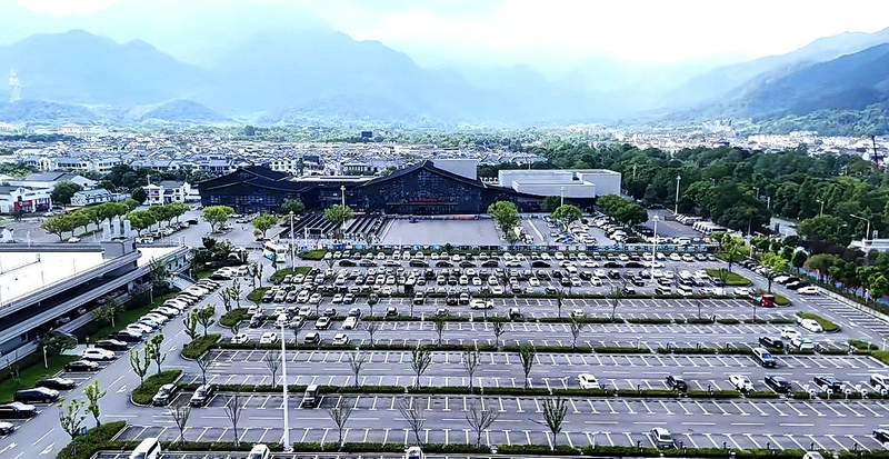 图为九华山游客服务中心换乘停车场航拍。九华山风景区融媒体中心供图