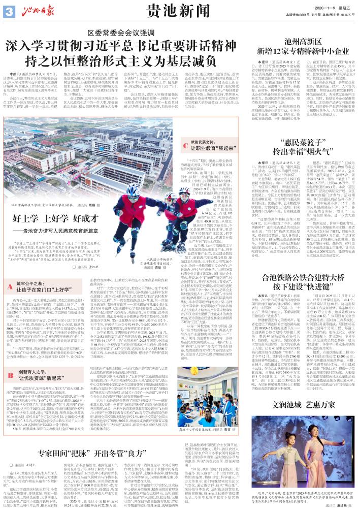 从每一间教室的清凉与明亮,到每一所学校的特色与活力,再到人才培养与产业脉搏的同频共振……“十四五”期间,贵池教育发展的每一步都踏在民生发展的鼓点上,一幅从“好上学”转向“上好学”“好成才”的美好画卷,是贵池教育对时代考卷的坚定作答,更是对人民群众殷切期盼的深情回应。
