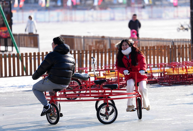 1月5日,游客在长春市南湖公园公益冰场上游玩。 新华社发
