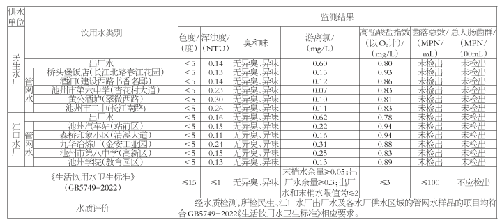 为进一步加强生活饮用水监督管理,保障生活饮用水安全,2025年12月24日对市政供水单位的供水水质进行监测,现将水质监测结果公示如下: