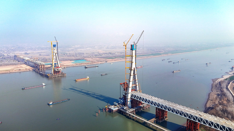 池州长江公铁大桥连接池州市贵池区与铜陵市枞阳县,全长3.1公里,主桥为三主桁三索面双层钢桁梁斜拉桥,集公路、城际铁路、城市轨道交通功能于一体。接下来,大桥建设将转入边跨钢梁顶推、主跨钢梁架设及斜拉索安装阶段。