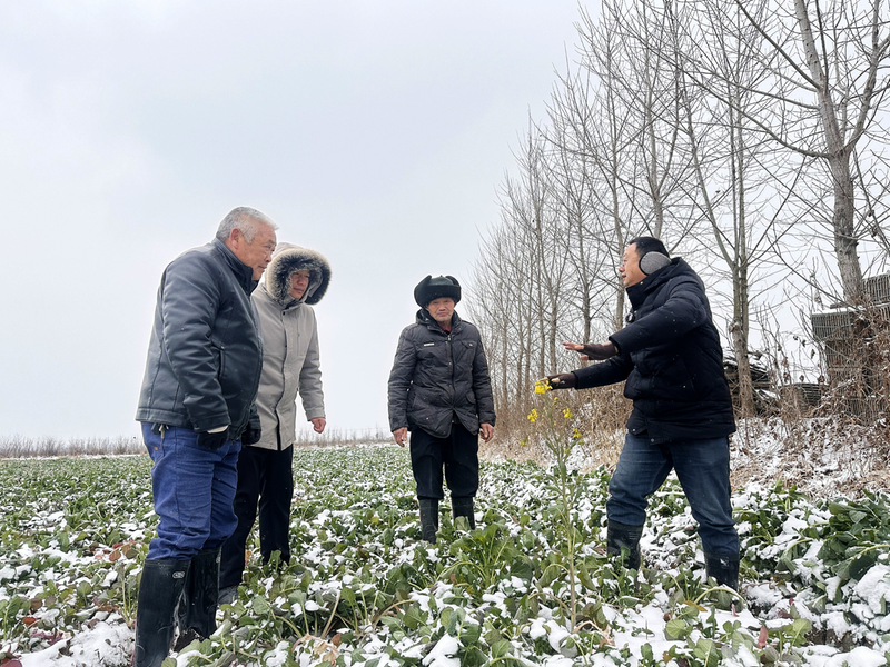 1月20日,位于贵池区秋江街道高脊岭社区的油菜种植基地,农技人员现场为种植户“把脉开方”。记者汪玉摄