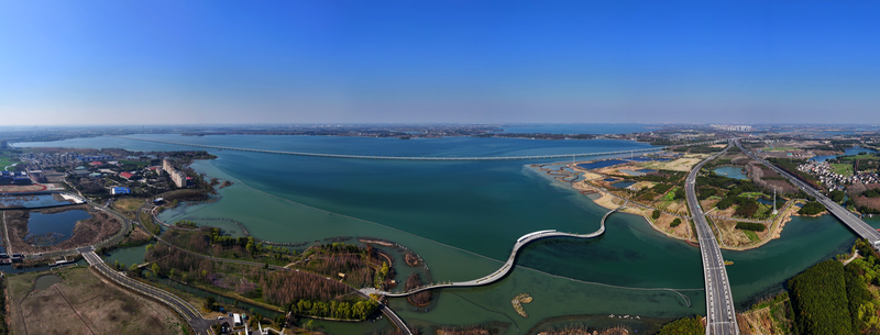 元荡慢行桥横卧元荡湖,连接江苏吴江和上海青浦两地(2025年3月17日摄,无人机照片)。