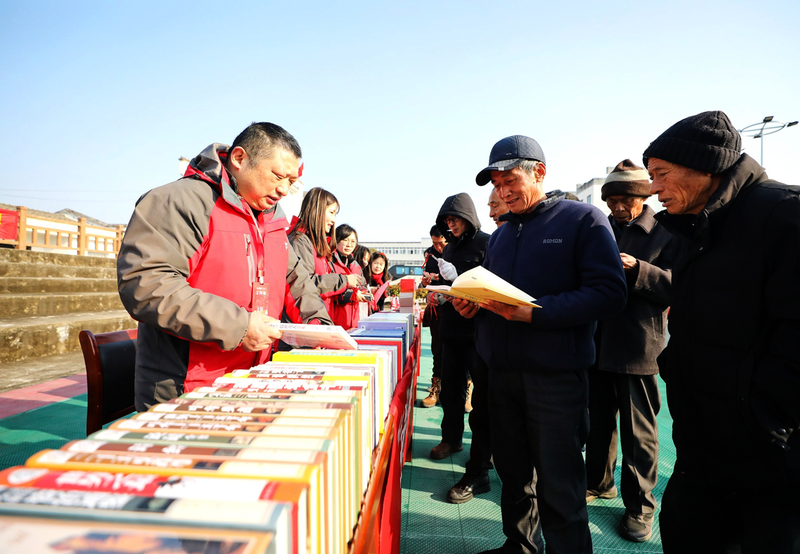 活动在热闹喜庆的文艺演出中拉开帷幕。黄梅戏选段、傩舞表演等节目轮番上演,赢得台下阵阵掌声。市文联的书法家们凝神挥毫,现场书写春联和“福”字送给居民;市农业农村局的咨询台前围满了农户,工作人员针对九华黄精种植技巧、池州鳜鱼养殖病害防治等耐心答疑,传授实用技术,现场还发放了通俗易懂的技术手册。