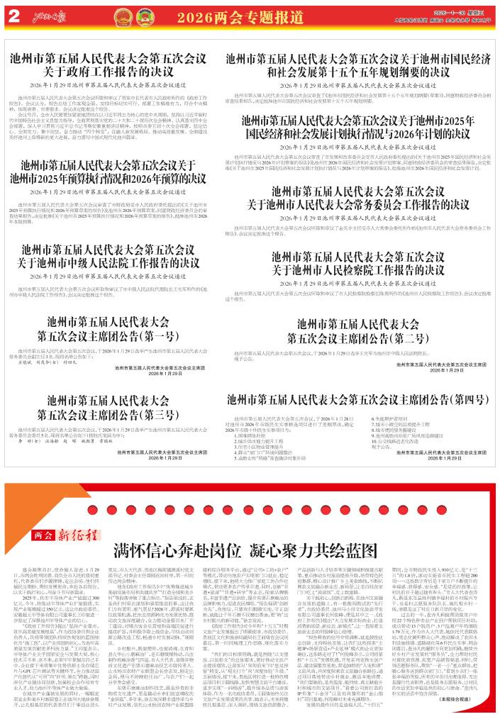 2026年1月29日池州市第五届人民代表大会第五次会议通过
