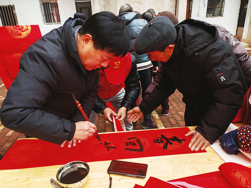 近日,贵池区职工体育联合会“挥毫泼墨送万福 欢天喜地过新年”“五进”活动走进茅坦社区,书法爱好者现场为居民书写春联,送上新春祝福。