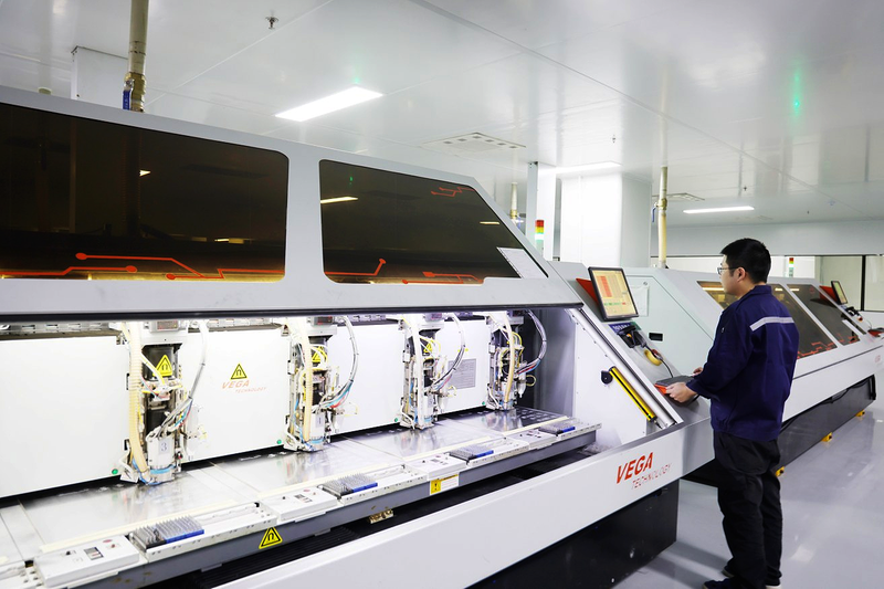 走进百强科技的无尘车间,只见技术人员正专注调试自动叠合系统中铜箔裁切机的张力,为夹料组合排板做精细准备。一旁,新投产的HDI高密度互联板压合与镭射钻孔生产线高速运转,机械臂精准作业,激光设备流光闪烁,勾勒出一幅智能制造的生动图景。以新产线为支点,百强科技正撬动新质生产力的澎湃动能,在印制电路板行业高端化赛道上加速奔跑,呈现出产销两旺、势头强劲的发展态势。