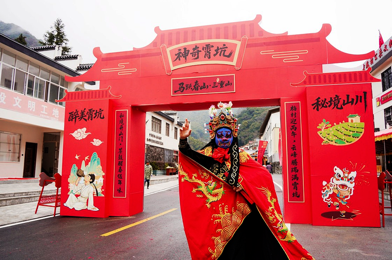 近日,“开山门,过大年”特色年俗活动在梅村镇霄坑村热闹开幕。这场将民俗体验、农产品展销与生态康养深度融合的乡村新春“盛宴”,让醇厚的乡土烟火与生动的文化韵味交织升腾,吸引游客走进山乡,沉浸式感受特有的新春气象。图为活动现场。 通讯员 叶利岚 摄