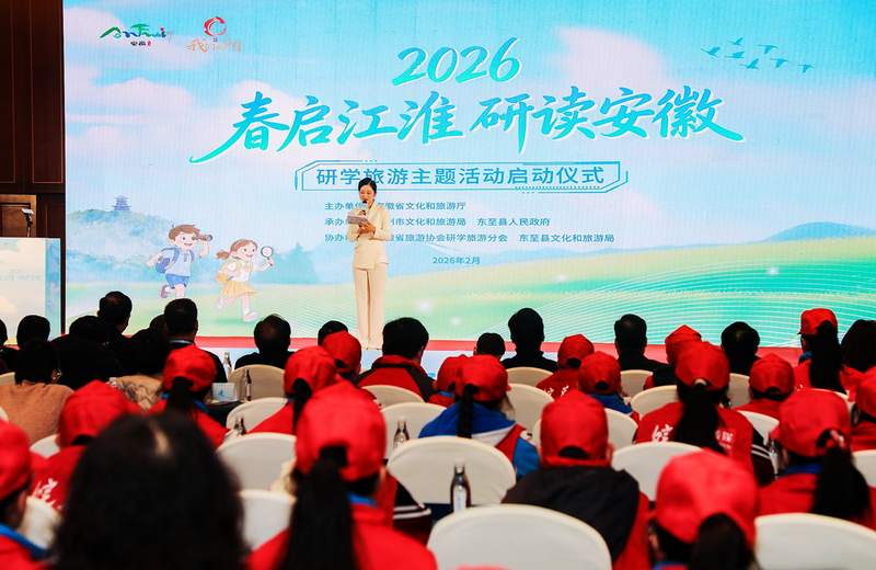2月5日,2026“春启江淮 研读安徽”研学旅游主题活动启动仪式在东至县举行。活动现场设置了16个主题展台,展示了研学旅游线路、课程、文创商品等;发布了“皖美冬日 研学安徽”旅游研学精品线路30条,东至华龙洞古人类遗址景区和星空之城景区入选;我市与安庆市签约共建研学旅游。启动仪式后,160余名参会者深入东至研学基地,体验考古、天文气象等特色研学课程。 记者 吴骏 摄
