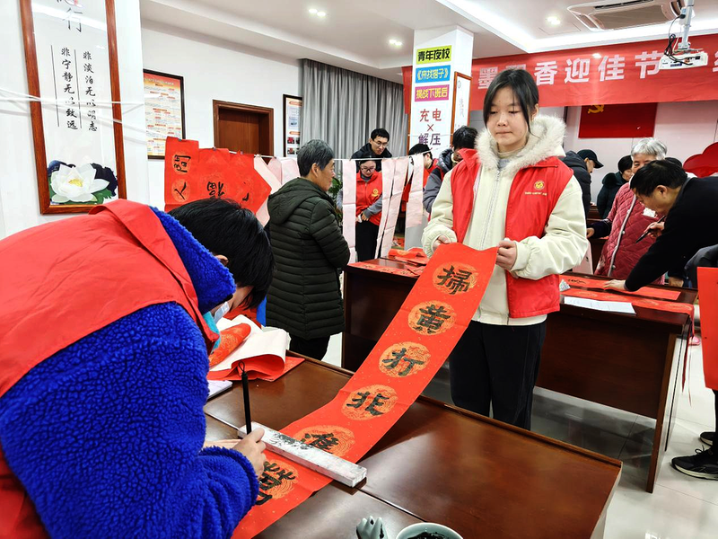近日,蓉城镇长龙社区新春周末便民服务大集市里,一场别开生面的“扫黄打非”主题宣传活动热闹开展。书法爱好者现场挥毫,书写融入“扫黄打非”理念的特色对联,将原本枯燥的政策宣传,转化为朗朗上口、喜闻乐见的鲜活表达。通讯员 青宣 摄