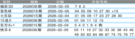 彩票开奖公告