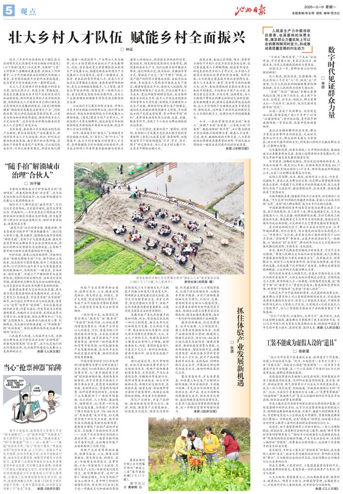 如今,一批批掌握前沿技术的“新农人”、深耕产业的“农创客”、心系故土的“归巢雁”、赋能治理的“新乡贤”,正汇聚为推动乡村全面振兴的磅礴力量。随着人才培养、引进、使用、激励机制的不断完善,人力资源的活水将持续浇灌希望的田野,中国大地必将绘就一幅农业农村现代化的壮丽画卷。