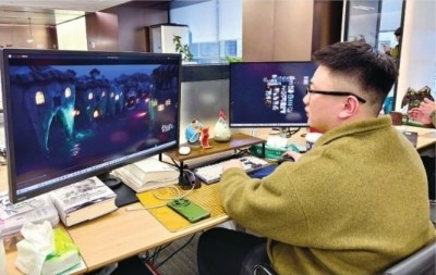智能留白传媒有限公司创始人袁超的工位上并排立着两块屏幕。左侧是AI动画制作界面,右侧是正在细化的分镜图。“流云飘浮在崇山峻岭间,整体基调以东方美学为主。”输入指令后短短几秒,AI便生成了四张风格各异的场景概念图。