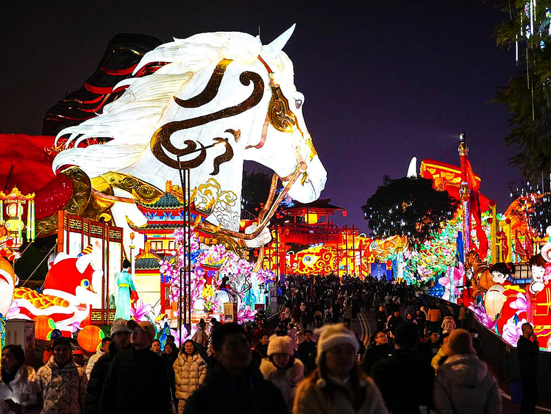 1月23日,游客在四川省自贡市中华彩灯大世界观灯。 新华社 发