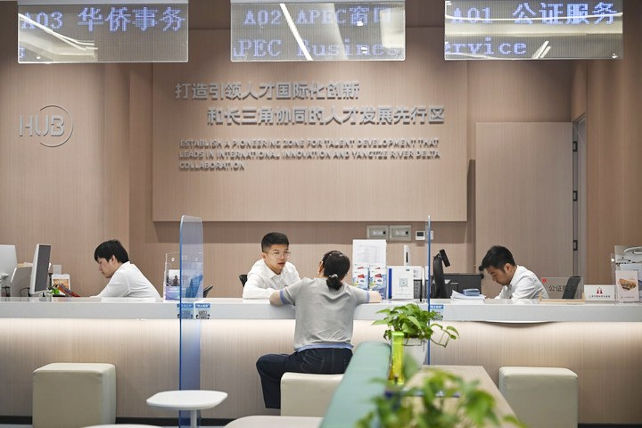 2025年9月10日,市民在上海虹桥国际人才服务中心办事大厅办理业务。