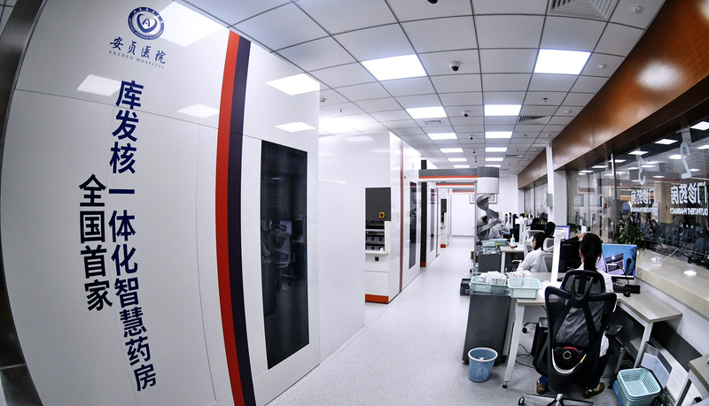 2月3日拍摄的北京安贞医院通州院区库发核一体化智慧药房。新华社记者 李欣 摄