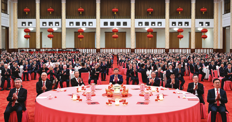 2月14日,中共中央、国务院在北京人民大会堂举行2026年春节团拜会。党和国家领导人习近平、李强、赵乐际、王沪宁、蔡奇、丁薛祥、李希、韩正等同首都各界人士欢聚一堂、共迎佳节。 新华社记者 谢环驰 摄