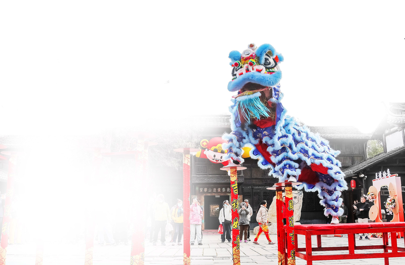 2月23日,游客在江苏省句容市宝华山国家森林公园观看舞狮表演。