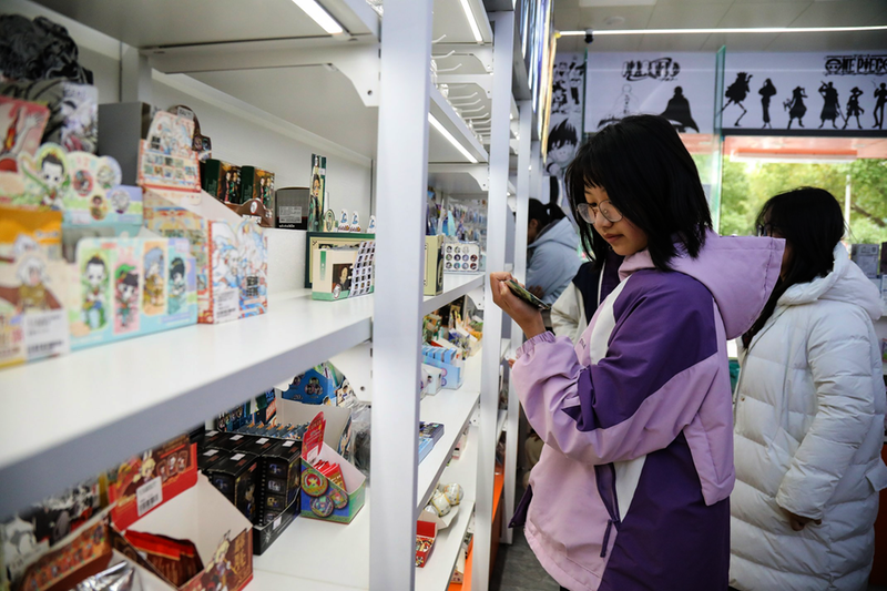 年轻消费者在商之都谷子店挑选文创产品。