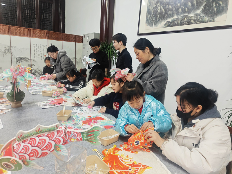 3月1日,市博物馆举办“非遗鱼灯映元宵”主题社教活动。活动中,在老师的指导下,儿童和家长一起制作鱼灯,沉浸式体验传统民俗文化。 记者 吴双甲 摄