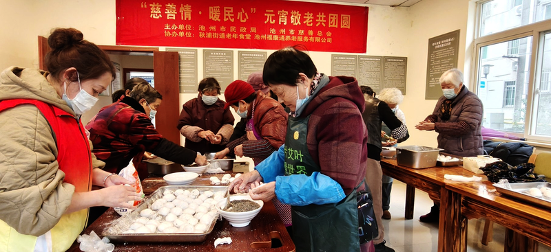 3月2日,“ 慈善情·暖民心”元宵敬老共团圆活动在贵池区康寿养老院、秋浦街道翠微苑助餐点同步举行。活动由市民政局、市慈善总会主办,组织老人、星星树康复中心儿童及志愿者一同做汤圆、庆元宵。记者 杜龙菲 摄
