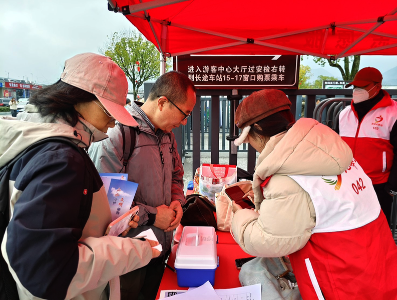 农历正月十五元宵节,九华山风景区游人如织,身穿红马甲的志愿者遍布景区各个角落,成为景区里最美风景线。“虽然辛苦,但能帮到全国各地的游客,听到他们的一声谢谢,心里就特别温暖。”志愿者徐菲刚为一名游客解答完路线问题,又转身忙着引导游客线上购票。与此同时,景区内多个志愿服务点内,免费热水、应急药品、景区导览图等便民物品一应俱全,全方位满足游客的不时之需。