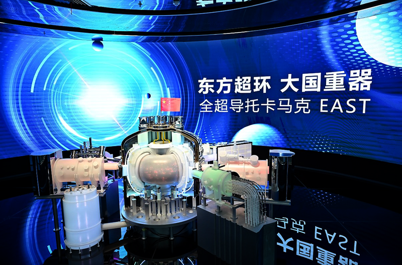 这是2025年7月1日在安徽省合肥市聚变创新展览馆拍摄的全超导托卡马克核聚变实验装置(EAST)模型。 新华社记者 张铖 摄