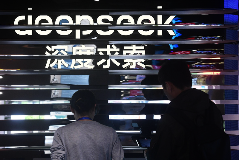 2025年5月4日,人们在浙江省杭州市文三数字生活街区的AI黑科技市集上体验DeepSeek的人工智能大模型。 新华社发(龙巍 摄)