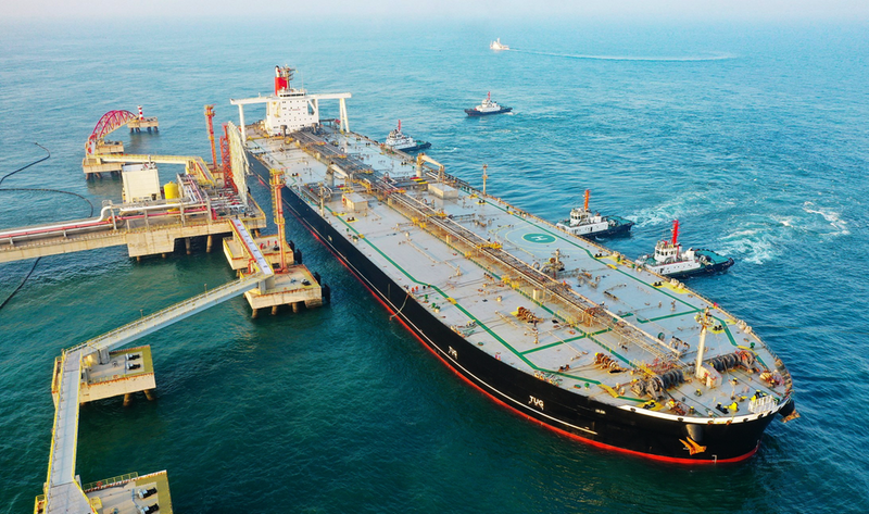 2025年12月18日,一艘装载着石化原辅料的外籍船舶泊入位于海南省儋州市的国投洋浦油储码头30万吨级原油泊位(无人机照片)。自2025年12月18日起,海南自由贸易港正式启动全岛封关。 新华社记者 郭程 摄