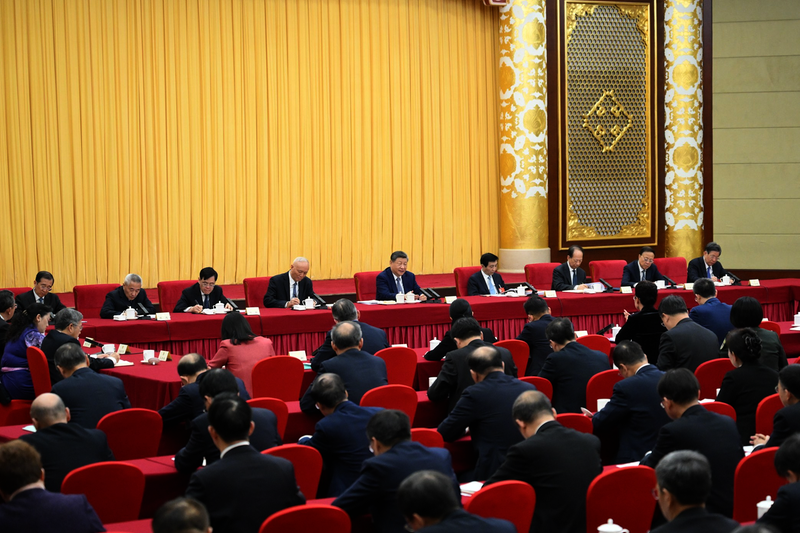 3月6日下午,中共中央总书记、国家主席、中央军委主席习近平看望参加全国政协十四届四次会议的农工党、九三学社、医药卫生界、社会福利和社会保障界委员,并参加联组会,听取意见和建议。中共中央政治局常委、全国政协主席王沪宁,中共中央政治局常委、中央办公厅主任蔡奇参加看望和讨论。 新华社记者 谢环驰 摄
