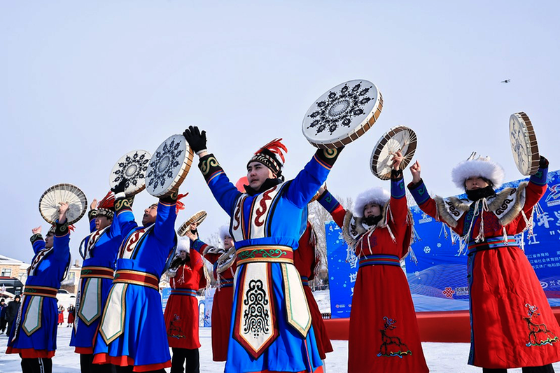 2026年1月23日,赫哲族群众在黑龙江省同江市街津口赫哲族乡冬捕活动现场进行民俗表演。 新华社发