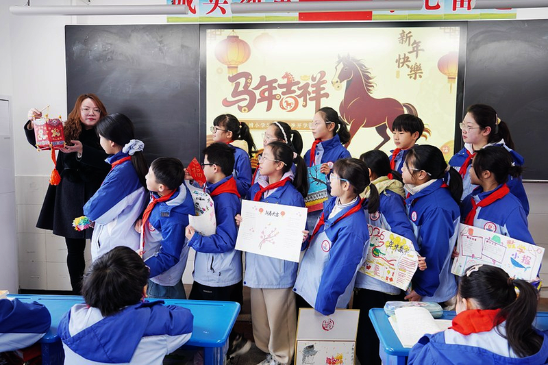 开学第一课中,该校的师生展示特色寒假作业。 通讯员 黄芳 摄