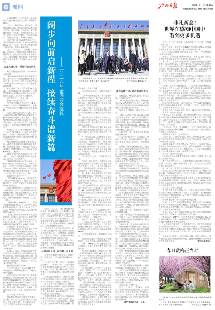 这是中国的春天,也是世界的机遇。透过全国两会,世界越来越读懂中国发展的多维度,也越来越理解中国发展之于世界的重大意义。 (新华社北京电)