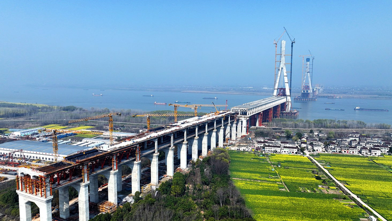 3月12日,池州长江公铁大桥4号主塔首对斜拉索挂设任务圆满完成,标志着项目建设正式进入斜拉索安装与主跨钢梁架设施工新阶段,为年内实现钢梁中跨合龙奠定了坚实基础。 通讯员 戴志强 章子雄 摄