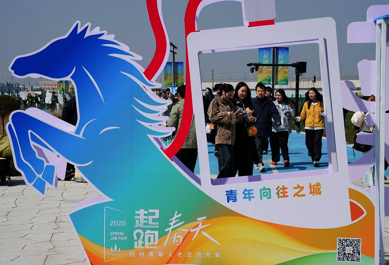 3月14日,求职者进入2026“起跑春天”杭州青年人才交流大会会场。