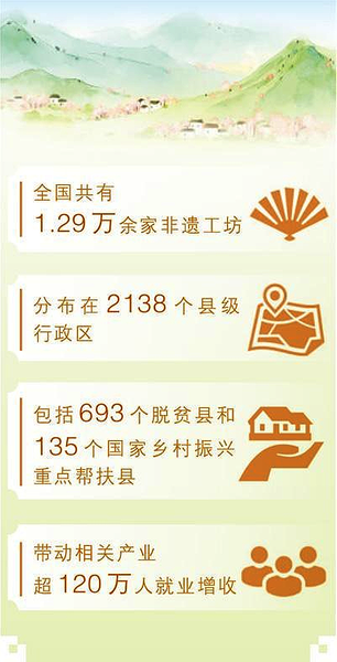 数据显示,全国共有1.29万余家非遗工坊,分布在2138个县级行政区,包括693个脱贫县和135个国家乡村振兴重点帮扶县,带动相关产业超120万人就业增收。特色黎陶成为乡村旅游新亮点,古建彩绘让更多群众就业增收,一碗凉粉带动一条产业链……非遗工坊不仅促进了传统技艺的传承发展,更为乡村全面振兴提供助力。