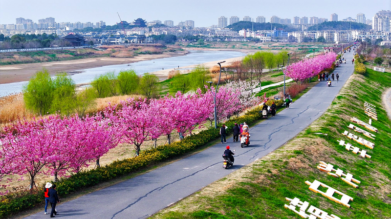 该负责人介绍,西门大埂沿线种植的樱花分为早樱和晚樱,目前早樱已进入盛花期,晚樱也将陆续开放,“除了这些春季花木,我们还搭配了其他品种,打造四季有景的风貌,让市民在家门口就能有休闲赏景的好去处。”
