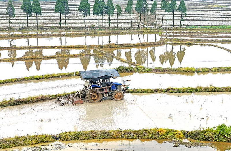 “ 春争日,夏争时。”春分刚过,从南到北,自东向西,祖国广袤的田野陆续进入繁忙的春耕时节。华南的早稻开始播种育秧,长江流域的油菜花正在盛开,华北平原上的小麦返青吐绿,东北黑土地上的农资正在加紧下摆……一幅生机盎然的春耕图在神州大地上徐徐展开。春耕是全年粮食生产的第一仗,关乎亿万农民一年的收成,更关乎全国14亿多人的饭碗能否端得稳、端得牢。面对新一年粮食生产的新形势、新任务,必须下好先手棋、打好主动仗,以春耕之“进”促全年粮食安全之“稳”。