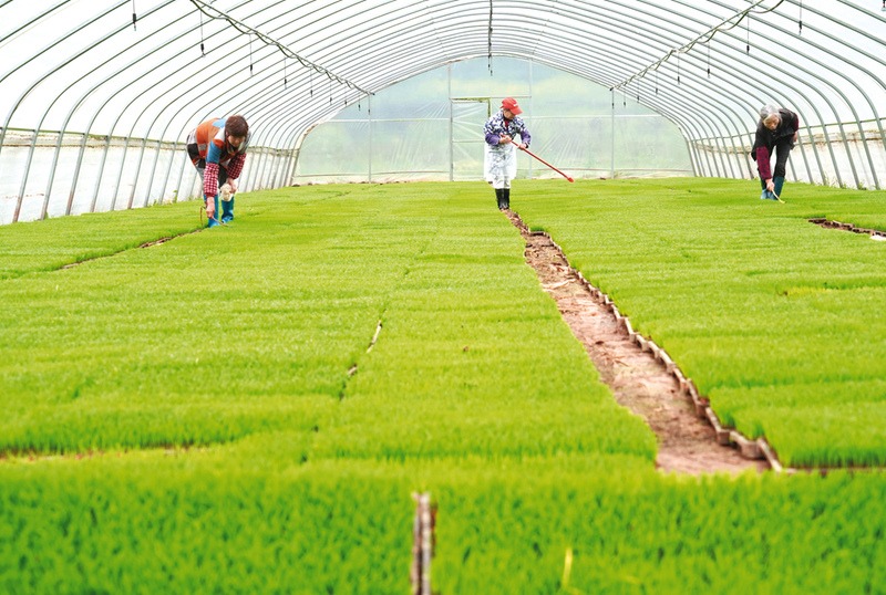 3月30日,农民在湖南省衡阳市祁东县归阳镇煜东种植养殖专业合作社的大棚育秧基地进行早稻育秧管护工作。随着气温回暖,各地农民抢抓农时,在希望的田野上勾勒生机勃勃的春耕画卷。新华社发(曹正平 摄)