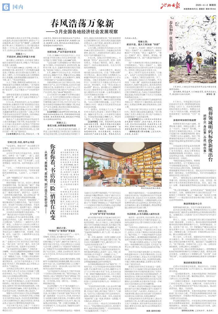 春耕备耕从南向北有序开展,田间地头生机盎然;科创前沿捷报频传,新质生产力动能澎湃;春日经济“热气腾腾”,点燃消费新引擎;重大工程接续发力,项目建设稳步推进……3月以来,全国各地凝心聚力、真抓实干,经济社会发展的脉动愈发强劲。