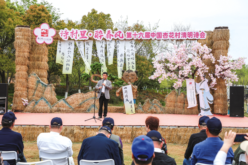 本报讯(记者邱勤/文 吴骏/图)4月5日,由杏花村诗社、秋浦诗社、杏花村集团有限公司主办,多地诗词社团协办的第十六届中国杏花村清明诗会暨“诗村里·醉春风”清明游园活动举行,百余名省内外诗词名家、本地诗友齐聚一堂,与线上观众共赴这场春日诗意之约。