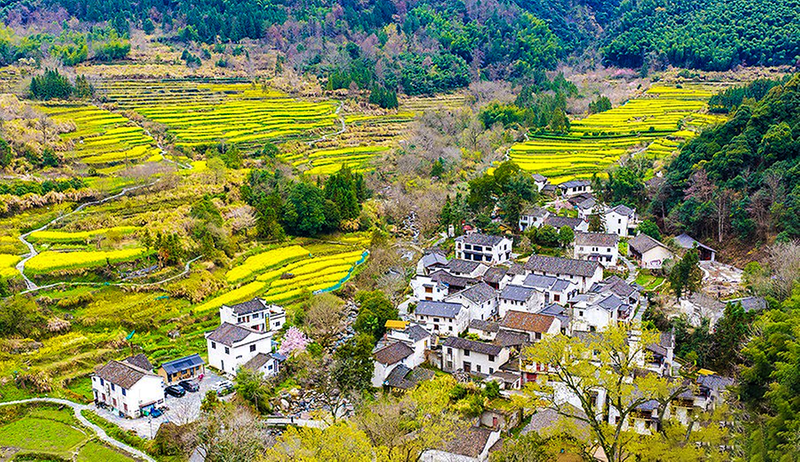 春日皖南,山色如洗。在石台县大演乡白石岭村,金黄的油菜花海从山脚铺展到半山腰,与粉墙黛瓦的徽派民居相映成趣。青石板路蜿蜒向前,潺潺白石溪穿村而过,一株需四五人合抱的麻栎古树伫立在村口。